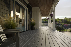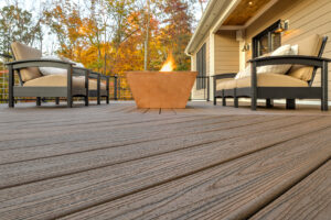 Enhance is the budget-friendly Trex collection. The deck boards are scalloped, which reduces the price and makes them lightweight.
